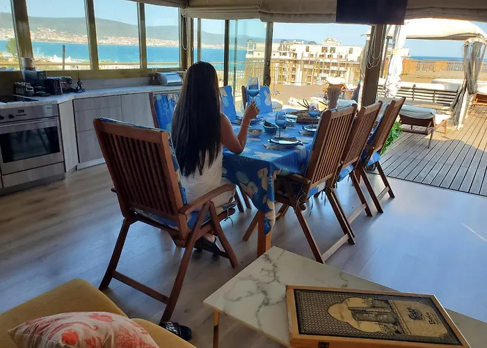 חוף דיון ממוקם במרחק של 2.4 ק"מ על הדירה. מגוון מסעדות כמו Salt & Pepper ו Neptune Nessebar נמצא תוך פחות מ-550 מטר על דירת דירות Sea View Luxury Penthouse.